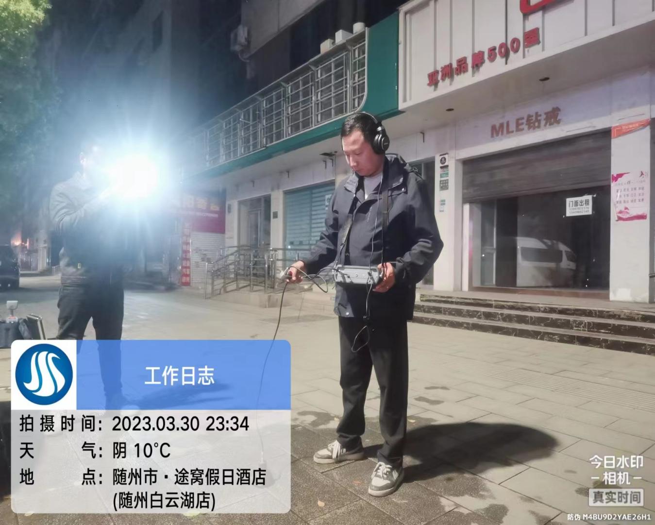 4月5日凌晨當(dāng)搶修隊伍正在緊張忙碌的工作時,運維中心測漏人員正利用精準測漏定位技術(shù),先后于涢水南路金三角路口處及舜井大道中房集團附近路口處,口徑分別為DN400和DN600的主供水管網(wǎng)中檢測出漏水點,并立即反饋維修部門盡快組織人員進行搶修。精準測漏有效防止了漏水點擴大,極大的降低了供水管網(wǎng)漏損率,保障了居民用水安全穩(wěn)定。