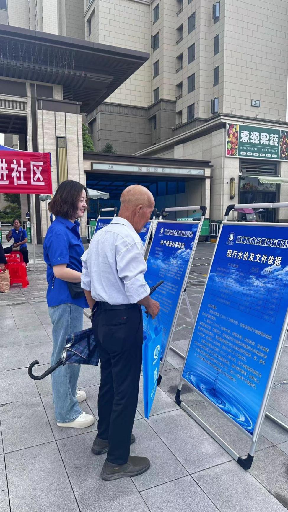 活動現(xiàn)場,市水務集團志愿服務隊在小區(qū)門口廣場有序搭建宣傳展架、懸掛宣傳橫幅、發(fā)放供水宣傳資料,工作人員以飽滿的熱情接待每一位前來咨詢的用戶。