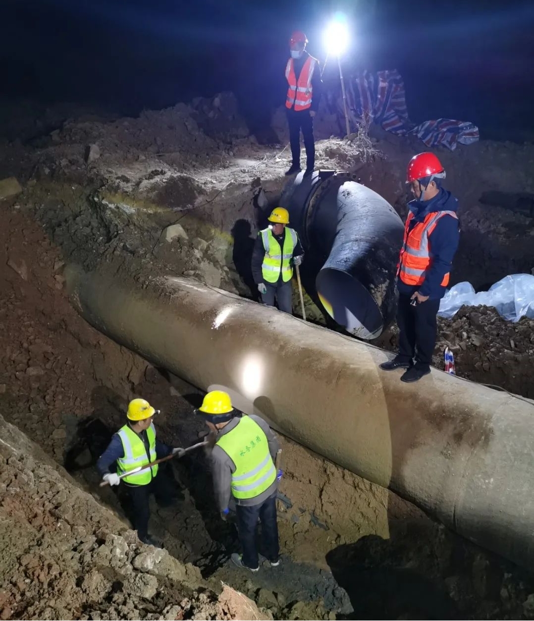 經(jīng)過24小時(shí)不間斷連續(xù)奮戰(zhàn),12月7日17時(shí)30分許,隨州城區(qū)?水河?xùn)|岸生態(tài)環(huán)境提升工程PPP項(xiàng)目-DN1000供水主管道遷改工程新舊管道順利連接。