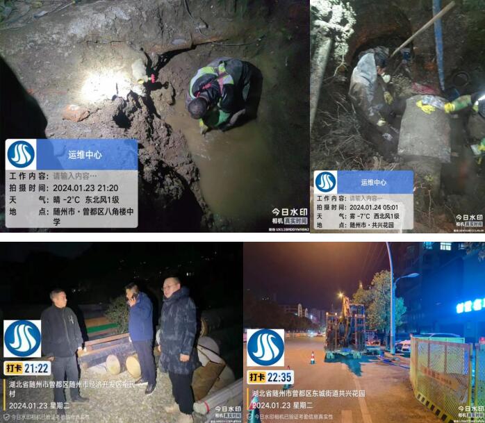1月23日,有市民反映鐵路片區(qū)下坡處地面有積水,附近有學(xué)校,周邊住戶也較多,對市民出行造成極大安全隱患。測漏人員第一時間到場勘查,排查后發(fā)現(xiàn)漏點在下坡處拆遷區(qū)內(nèi),工作人員及時與當(dāng)?shù)厣鐓^(qū)居委會和相關(guān)部門取得聯(lián)系,經(jīng)過多方協(xié)調(diào),滿足施工條件后,立即組織搶修隊伍進行開挖,在寒風(fēng)凜冽的深夜,搶修人員爭分奪秒,全然顧不上他們已凍得通紅的雙手,只希望以最快速度完成改造作業(yè),最大程度減小停水作業(yè)對居民的影響。當(dāng)晚21點25分歷時3小時將DN100管道漏水點搶修完畢,保障了極寒天氣下周邊居民、學(xué)生出行的安全。