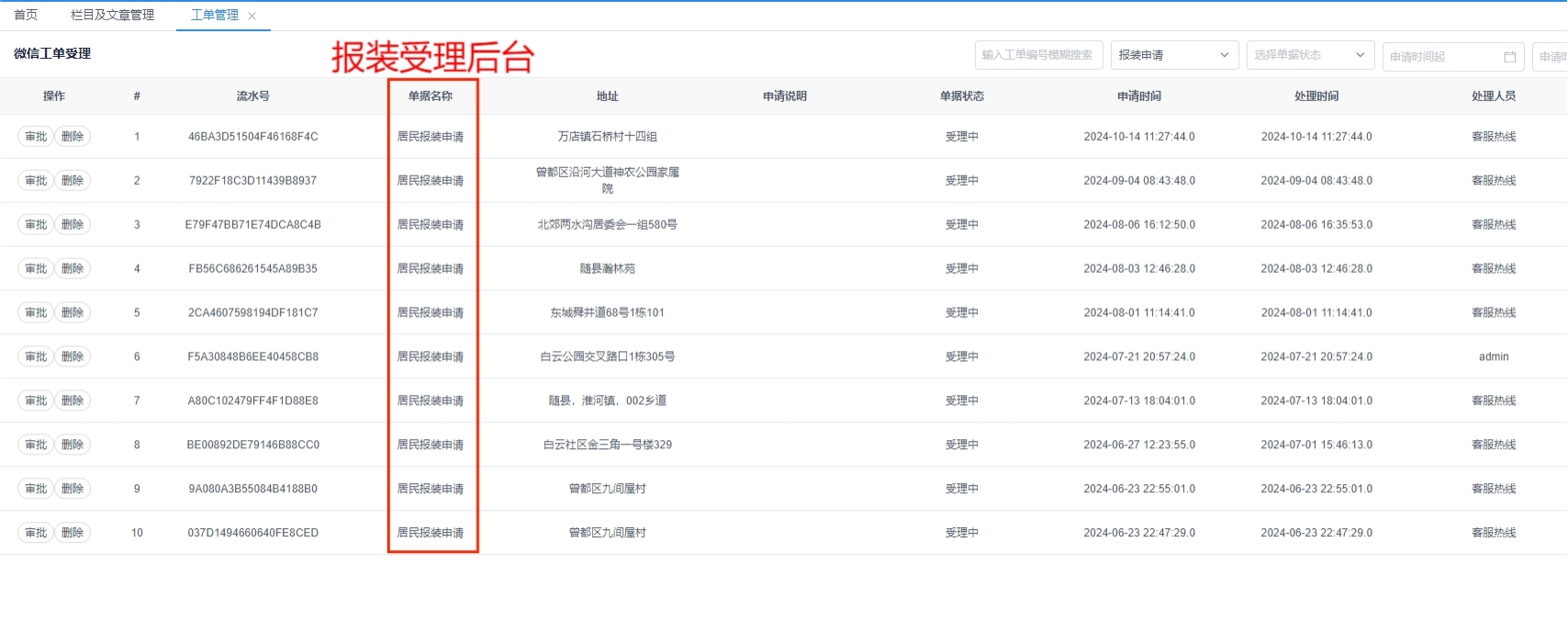 (1)水務集團服務后臺操作截圖
