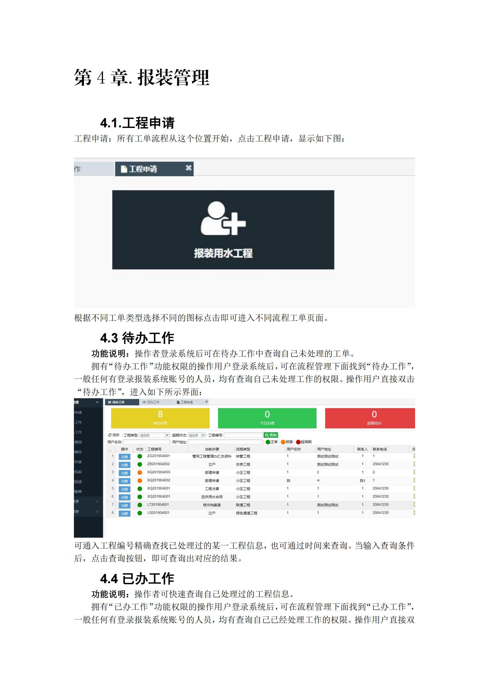 報裝業(yè)務(wù)系統(tǒng)流程圖,系統(tǒng)操作手冊、功能界面截圖