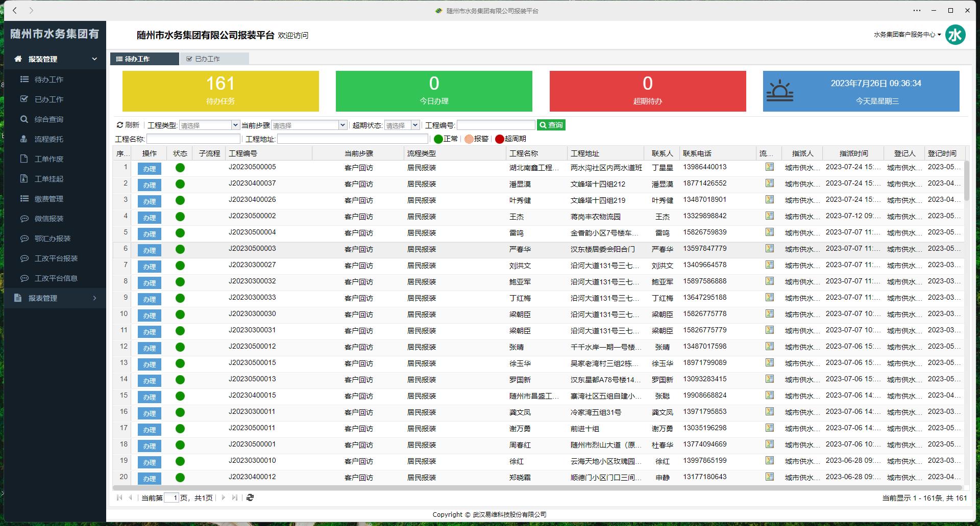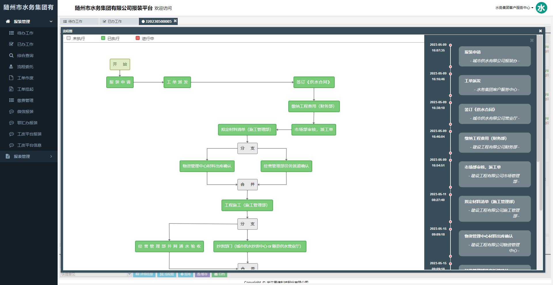 5)報裝業(yè)務(wù)系統(tǒng)自動流轉(zhuǎn)提醒,自動記錄