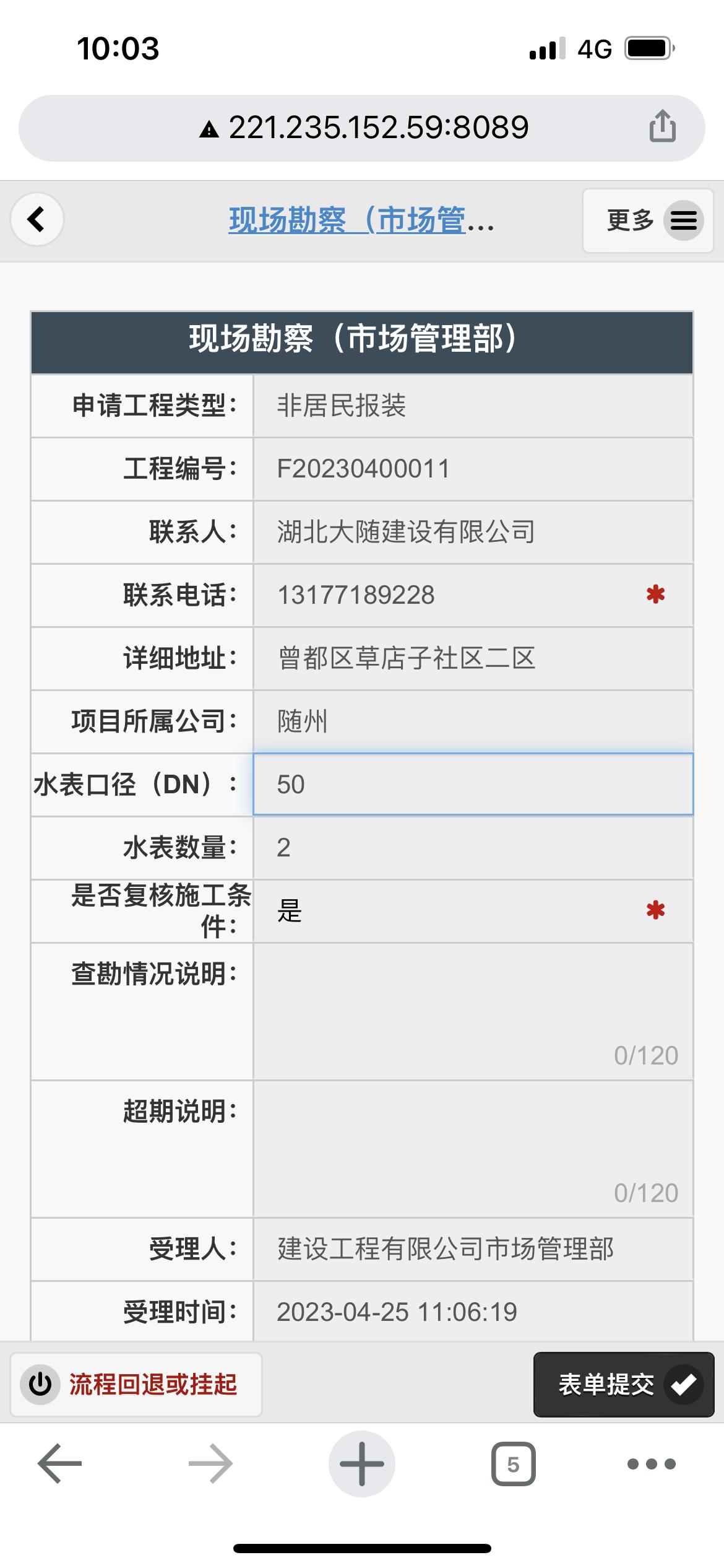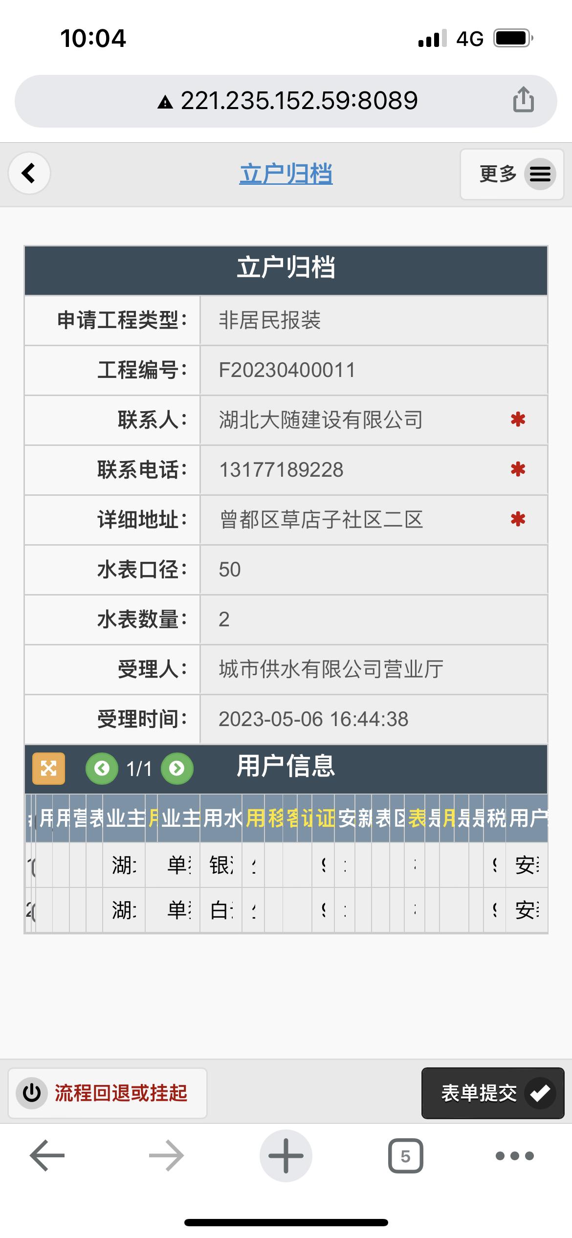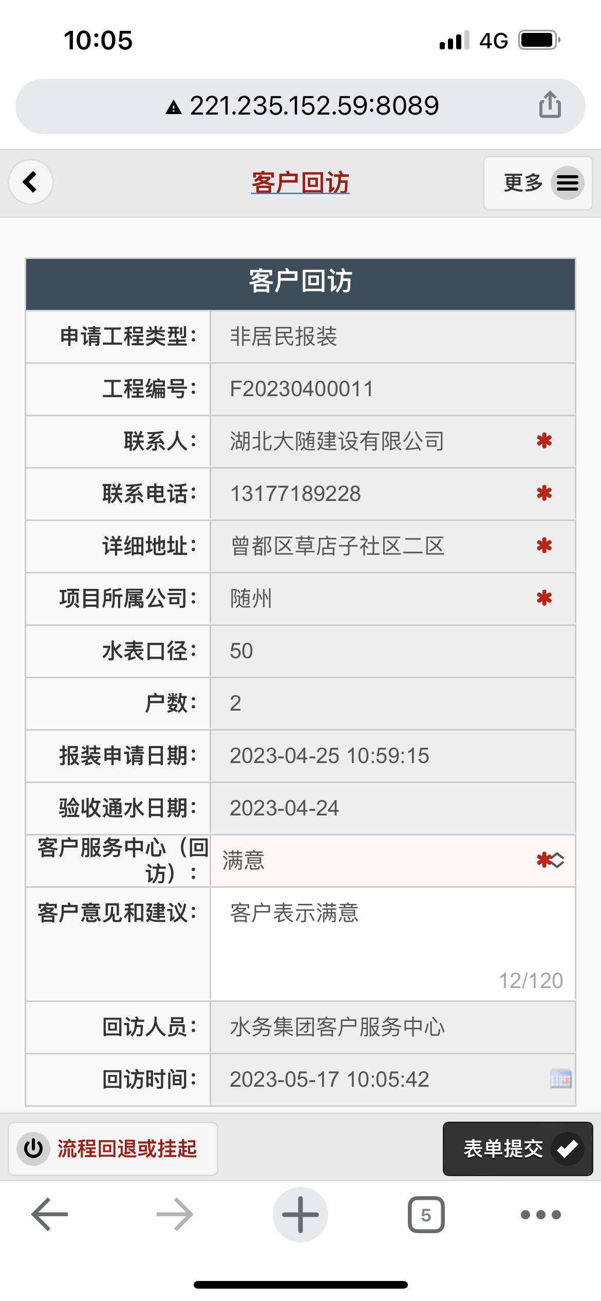 二、應用案例及實際操作界面截圖(包含用水報裝、現(xiàn)場勘查、預算方案、工程施工、驗收通水、客戶回訪等功能)
