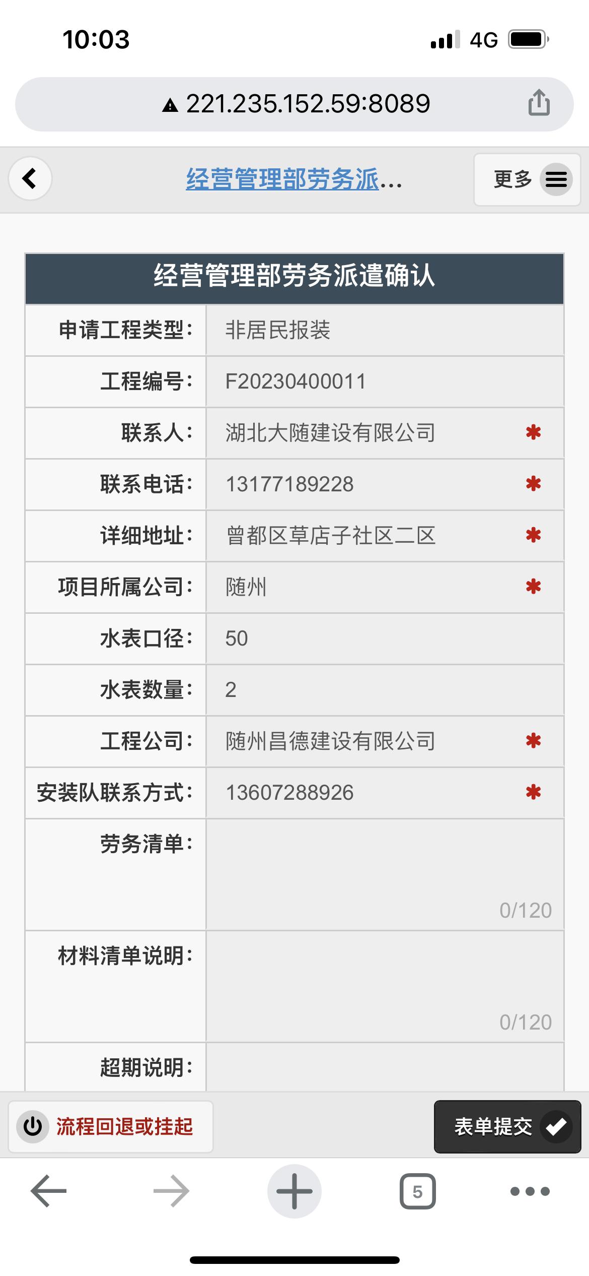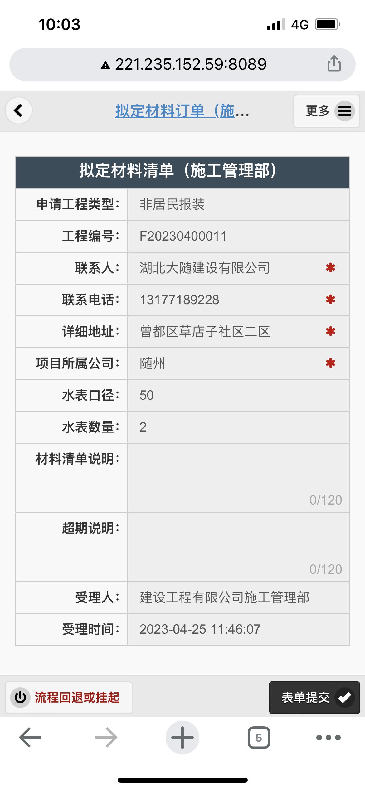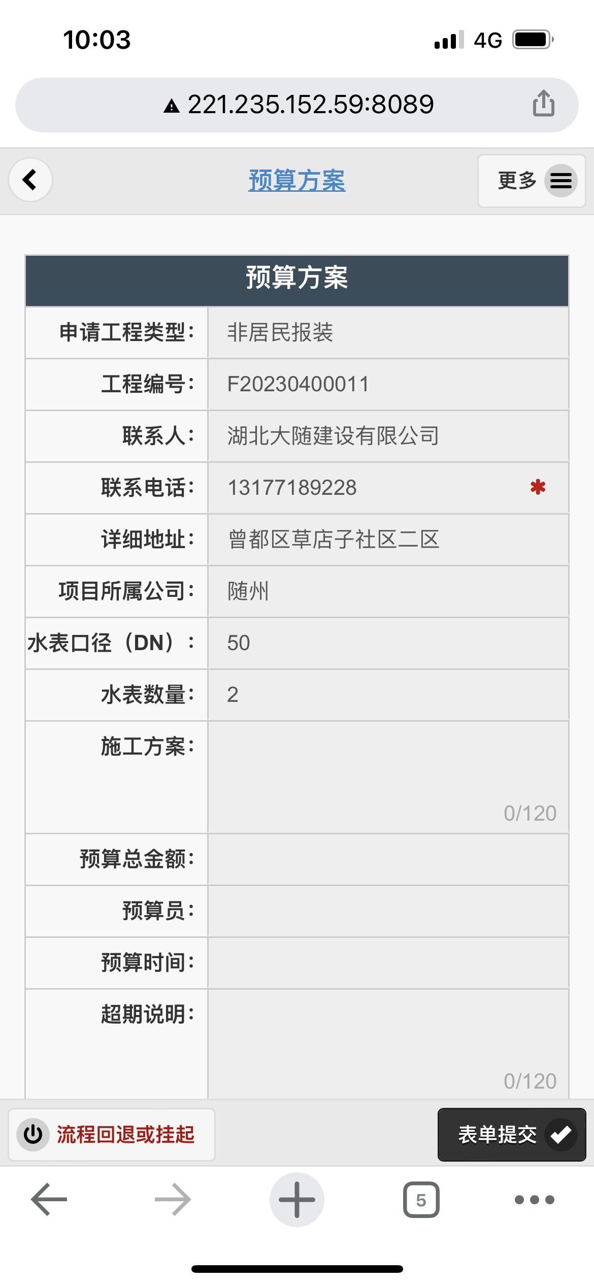 二、應用案例及實際操作界面截圖(包含用水報裝、現(xiàn)場勘查、預算方案、工程施工、驗收通水、客戶回訪等功能)