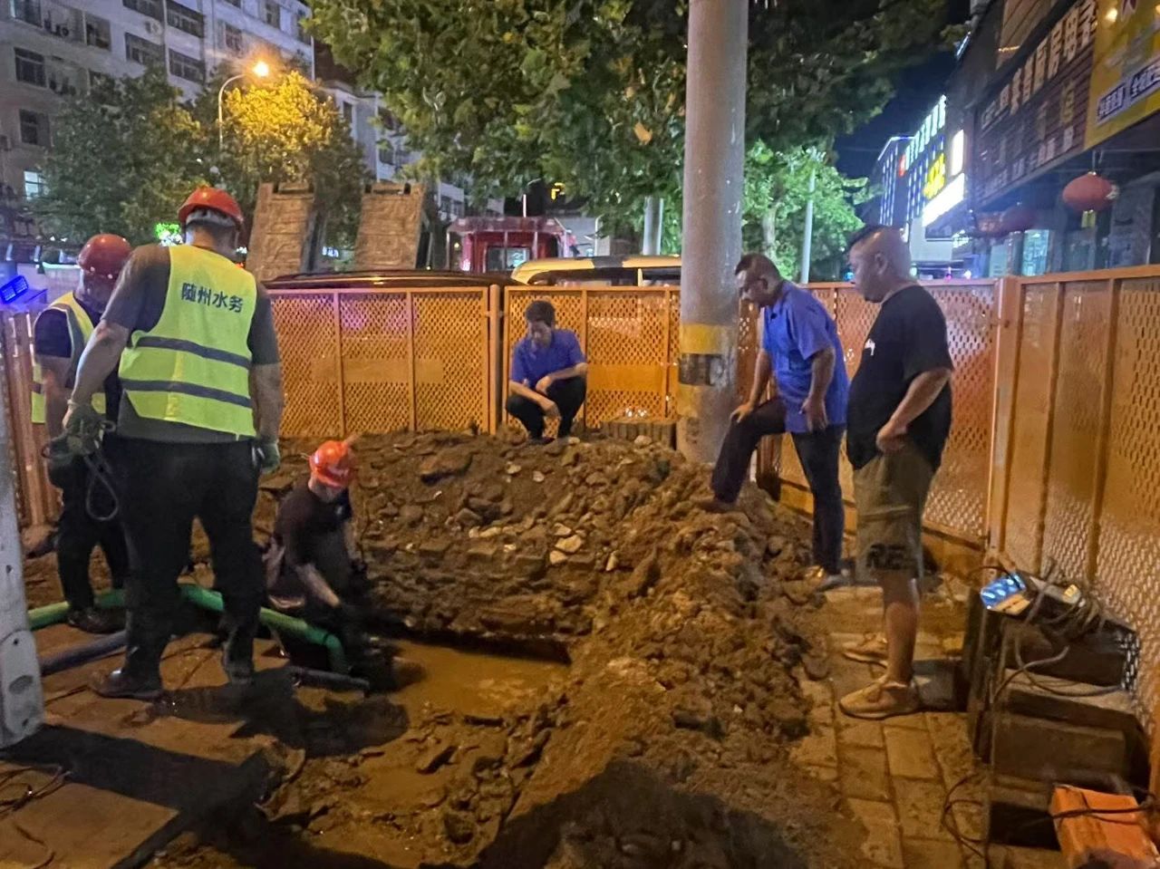 2024年2月4日22時許,隨州市水務(wù)集團(tuán)24小時供水服務(wù)熱線3318118接到用戶反映稱,季梁大道與交通大道交叉口附近疑似出現(xiàn)管道漏水情況。當(dāng)時隨州正遭遇著一場歷史少見的低溫雨雪冰凍災(zāi)害天氣,通往現(xiàn)場的路面上被凍雨和冰雪覆蓋,車輛難以通行。然而“災(zāi)情就是命令”,面對持續(xù)漏水可能造成更加嚴(yán)重的后果,周新和他的“黨員突擊隊(duì)”迎寒而上,冒雪“逆行”,克服重重困難抵達(dá)現(xiàn)場,連夜展開搶修工作。經(jīng)過現(xiàn)場勘查,終于查找出漏水原因。但在嚴(yán)寒天氣下,機(jī)械進(jìn)出困難,給搶修帶來了極大難度。