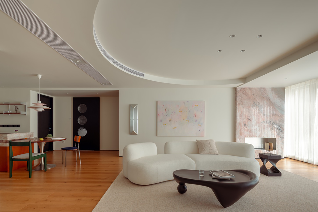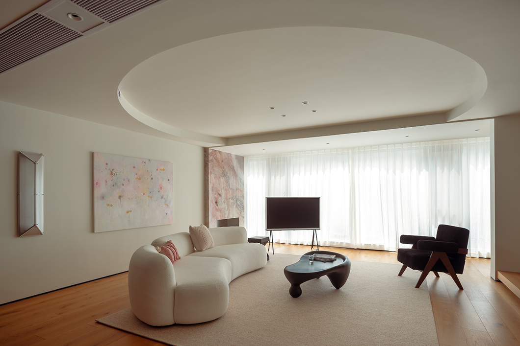 因?yàn)榈嘏娣e的刻意預(yù)留,有了自然的落塵區(qū)。端景的開洞,是為了讓入戶更有呼吸感。